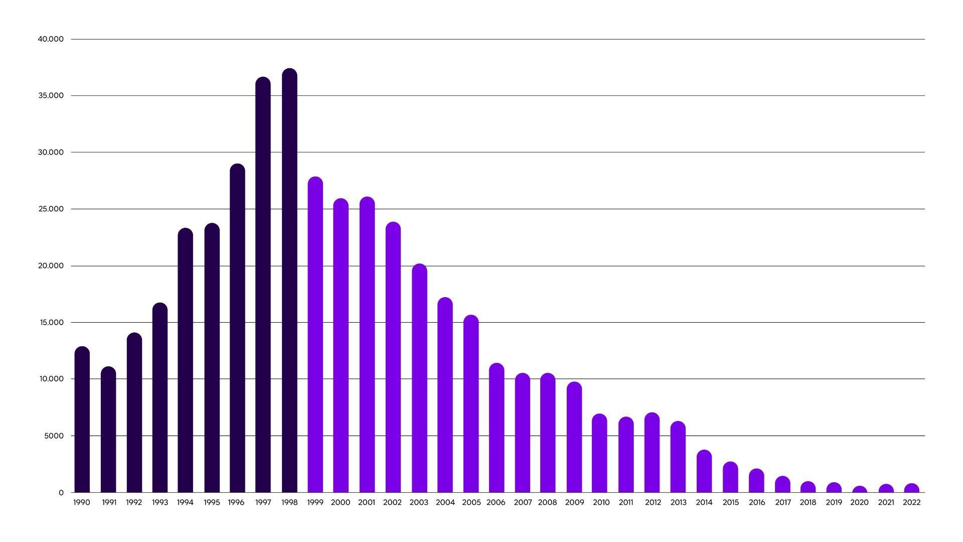 reduction in cases since 2001